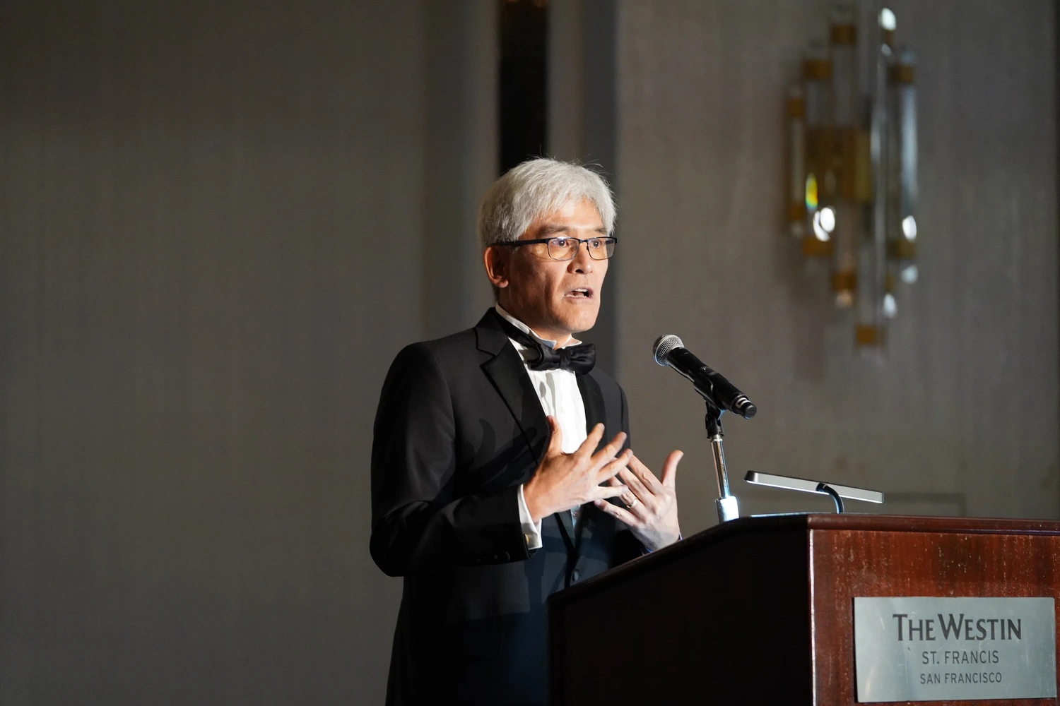 五味会頭より、Steven Teraoka氏とサンノゼ日系アメリカ人博物館の外務大臣表彰受賞について、お祝いの言葉が述べられ、日頃より当地コミュニティの発展に尽力されてきた皆様のご功績を、参加者一同で称える大変喜ばしい場面となりました。